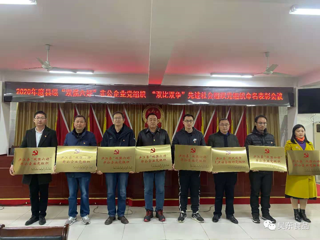 為進(jìn)一步選樹(shù)典型,打造亮點(diǎn),發(fā)揮先進(jìn)典型的示范帶動(dòng)作用,營(yíng)造比學(xué)趕超氛圍,提升全縣非公企業(yè)和社會(huì)組織黨建工作整體水平。今年,縣委組織部、縣委非公工委組織開(kāi)展了第一屆縣級(jí)“雙強(qiáng)六好”非公企業(yè)黨組織和縣級(jí)“雙比雙爭(zhēng)”先進(jìn)社會(huì)組織黨組織創(chuàng)建評(píng)選活動(dòng)。昊東食品黨支部在此次活動(dòng)中被評(píng)選為縣級(jí)“ 雙強(qiáng)六好”非公企業(yè)黨組織。